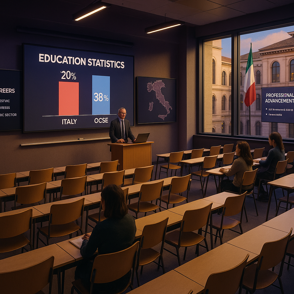 Punti chiave Italia ultima in Europa per laureati adulti: Solo il 20% degli italiani tra 25 e 64 anni possiede una laurea, contro una media OCSE del 38%. Divario Nord-Sud accentuato: In diverse regioni meridionali il tasso di laureati adulti…